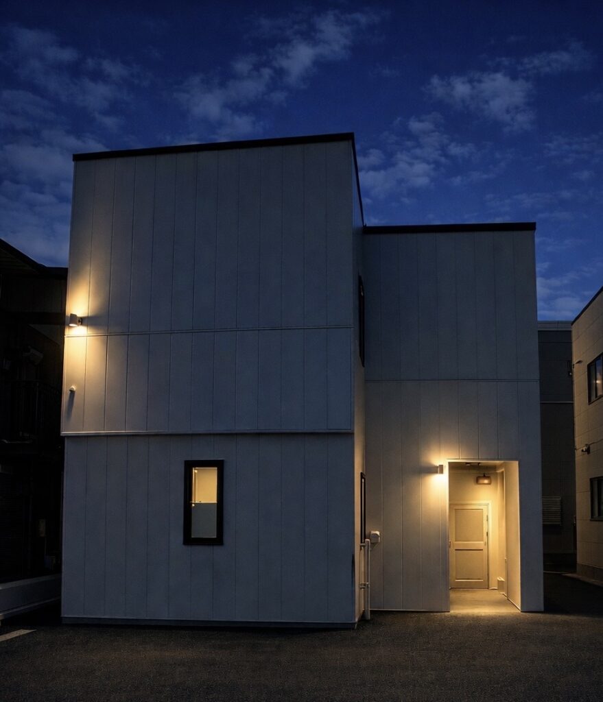 白い外壁が印象的な